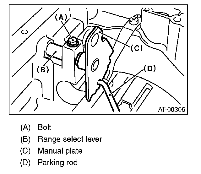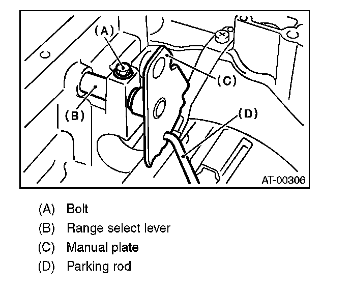 9) Remove the bolts securing range select lever, and then remove the select lever, manual plate and parking rod.