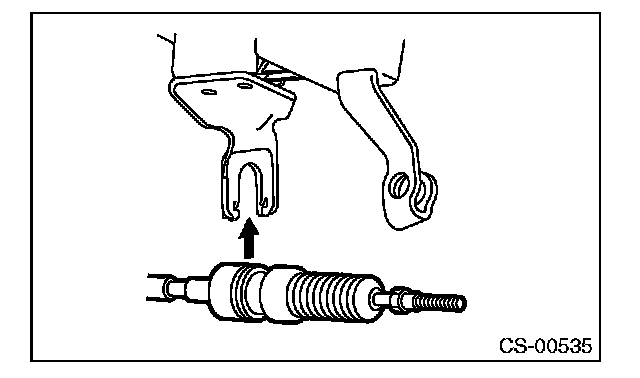 6) Insert the tip of inner cable into connector hole of select lever, and fix the cable to bracket.