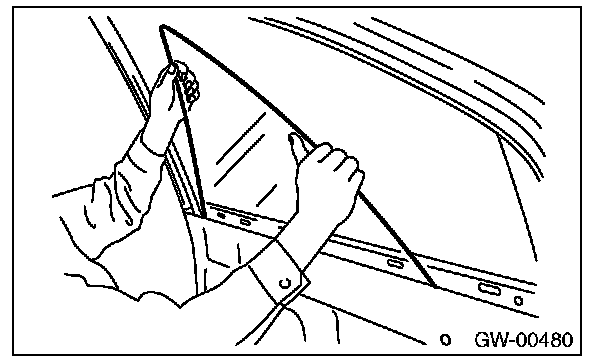 CAUTION: Make sure that the glass run rubber is placed securely in door frame and sash.