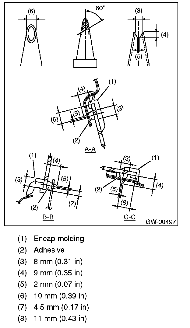 - For minimum drying time and vehicle standing time before driving after bonding, follow instructions or instruction manual from the adhesive manufacturer.