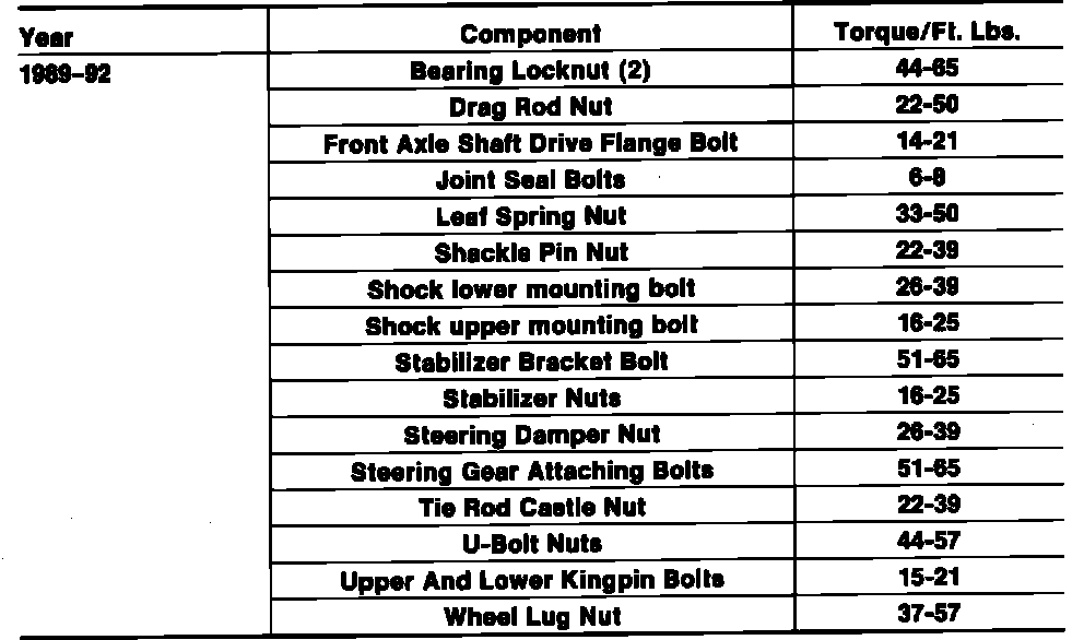 Tightening Specifications: