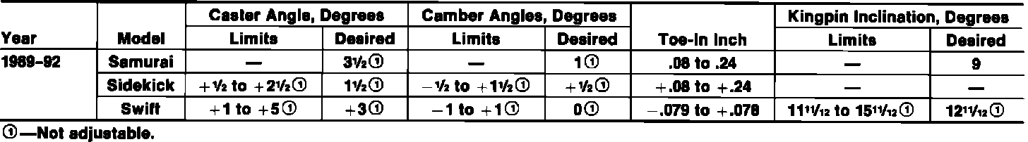 Front Wheel Alignment Specifications: