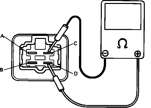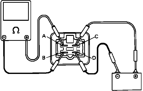 - Check that there is continuity between terminals "A" and "B" when battery is connected to terminals "C" and "D".