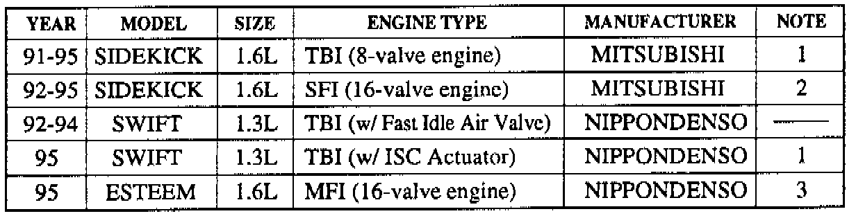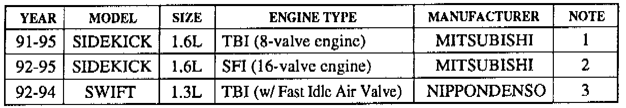 ^ THE 1991-1995 SUZUKI CARTRIDGE (09932-66010-001) WILL NOT SUPPORT THE 1991-1994 SWIFT GT (DOHC).