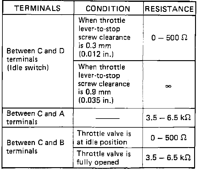 - If idle switch check result is not satisfactory, adjust installation angle of TPS and if found defective in the other check, replace TPS.