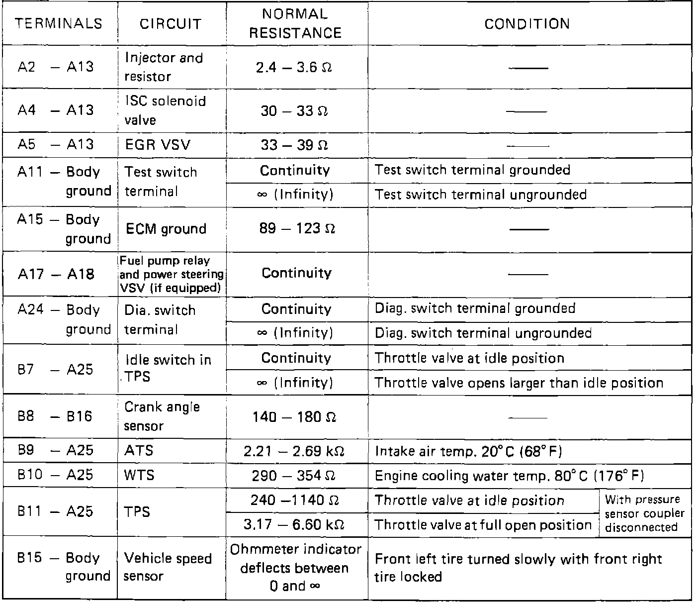ECM Terminal Resistance Values: