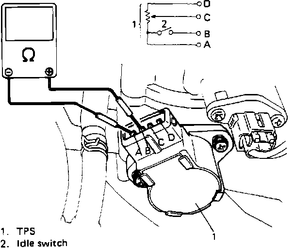 If idle switch check result is not satisfactory, adjust installation angle of TPS and if found defective in the other check, replace TPS.