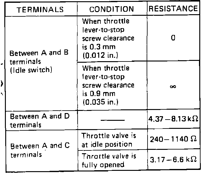 4. Using ohmmeter, check resistance between terminals under each condition given in table.