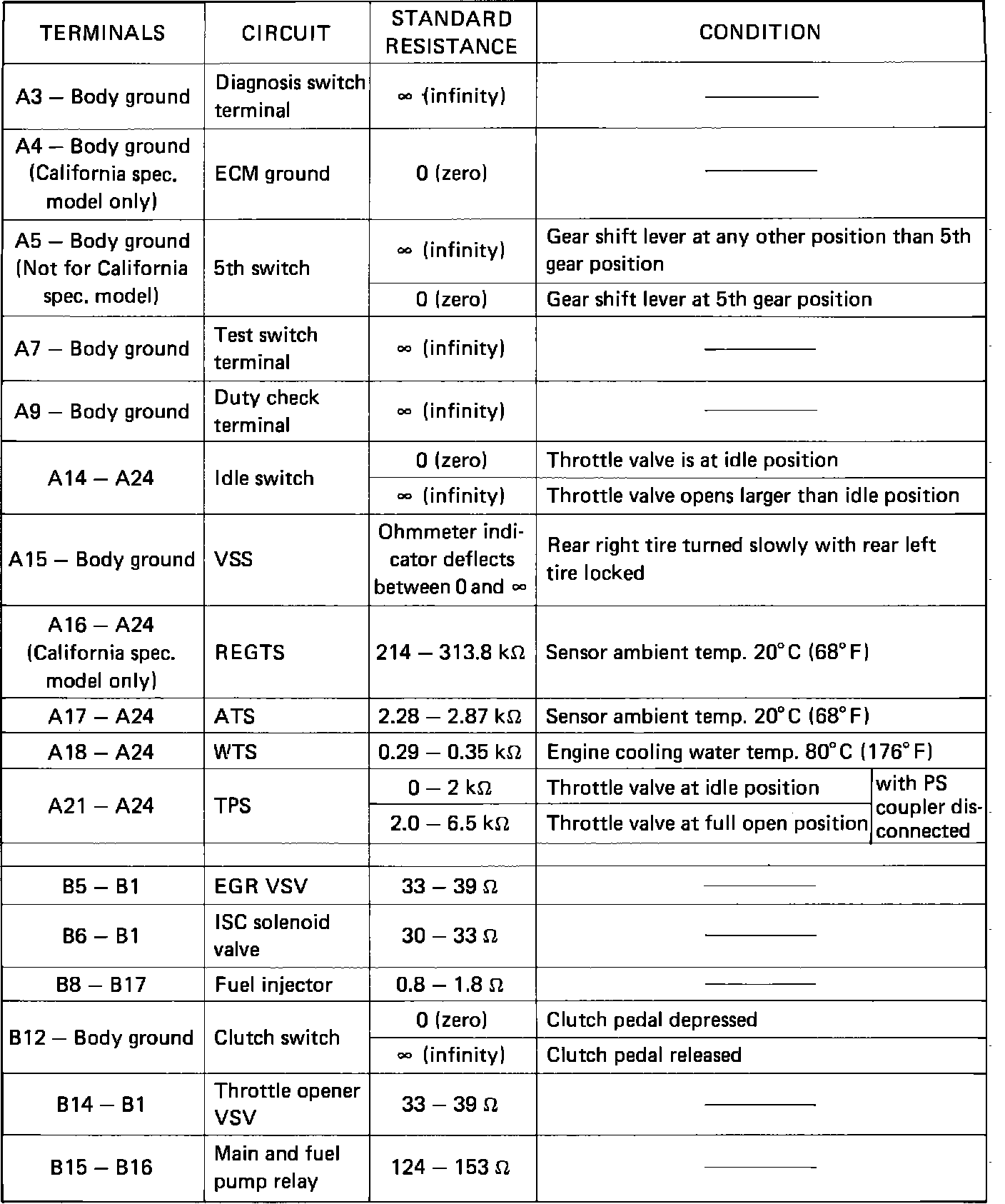 The ECM and it's circuits can be checked at the ECM terminals by measuring voltage and resistance.