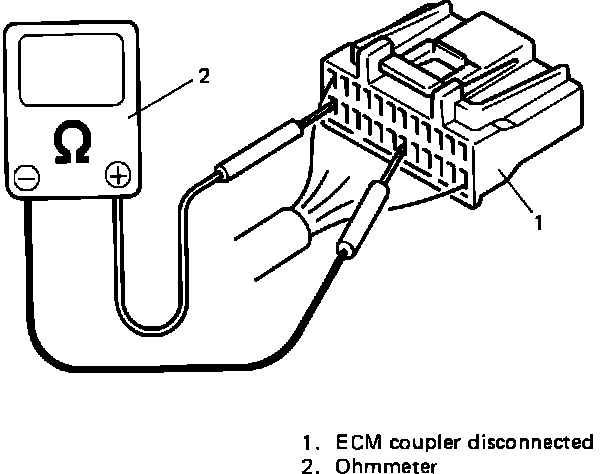 CAUTION: The ECM cannot be checked by itself. Never connect a DVOM to the ECM pins without the harness connected.