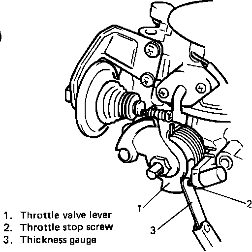 3. Insert 0.3 mm (0.012 in.) thickness gauge between throttle valve lever and throttle stop screw.