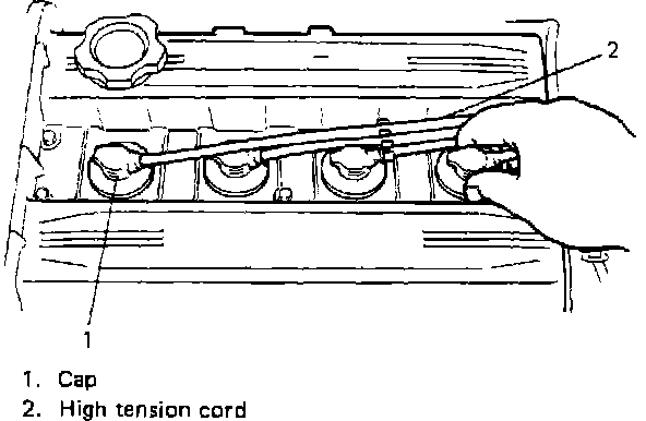 - Pull out high tension cords by gripping their caps and then remove spark plugs.