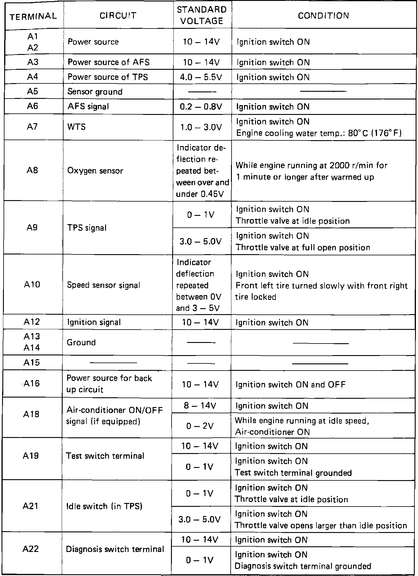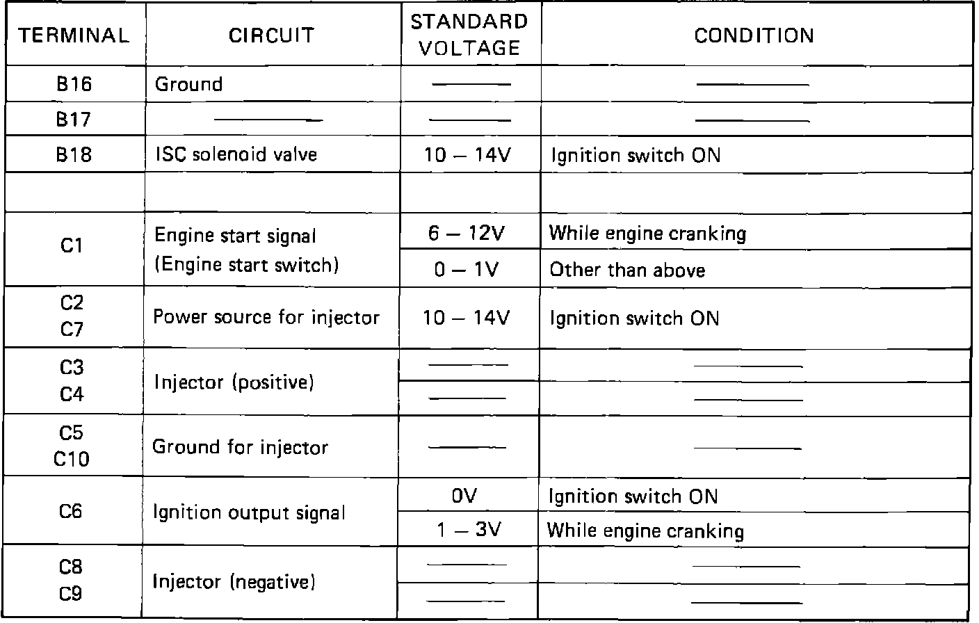 ECM Terminal Voltage Values: