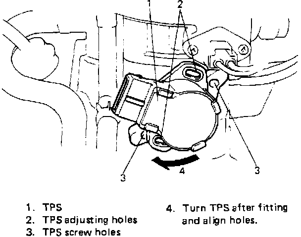 Fit TPS to throttle body in such way that its adjusting holes are a little away from TPS screw holes as shown and turn TPS clockwise so that those holes align. Then hand-tighten TPS screws.