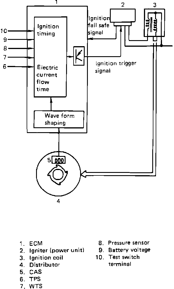 ECM judges the engine condition by using signals from various sensors, selects the most suitable electric current flow time and ignition timing for that engine condition from among those prestored in its memory and sends a signal to the power unit.