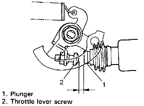 2. Check to make sure that plunger of ISC actuator and throttle lever screw are not in contact with each other. If they are, warm up engine.