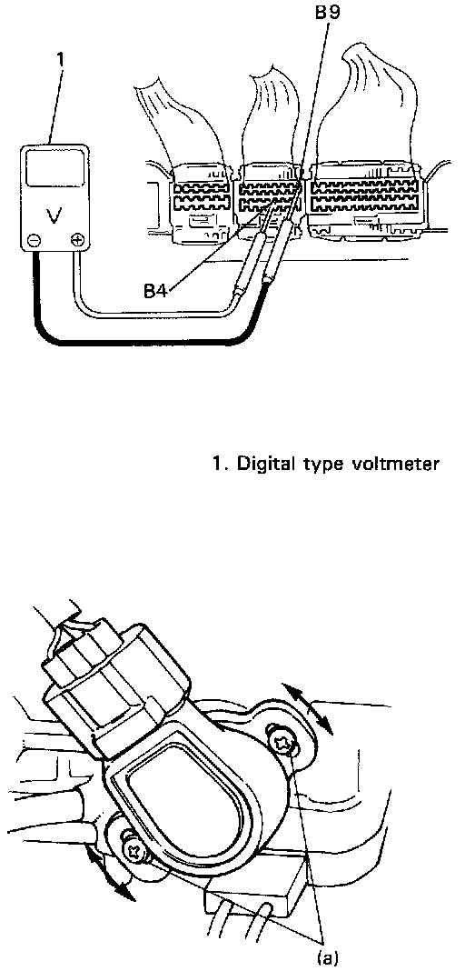 5. Turn TP sensor clockwise or counterclockwise and tighten TP sensor screw at a position where voltage as specified below is obtained at coupler terminal B11.