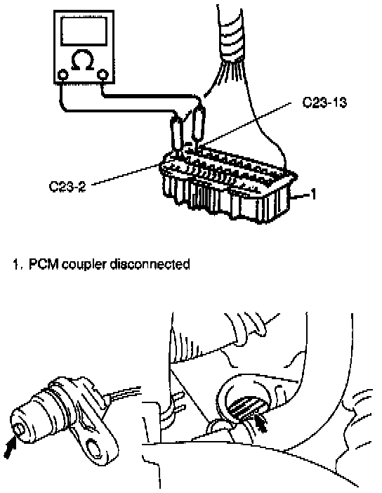 - Bring ohmmeter probes in touch with coupler terminals from harness side.
