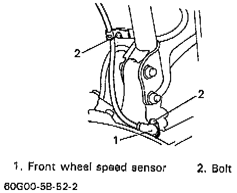 5. Remove harness clamp bolts and remove front wheel speed sensor from knuckle.