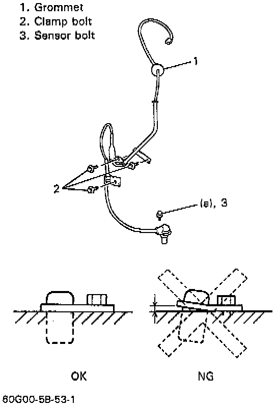 ^ Do not cause damage to surface of front wheel speed sensor and do not allow dust, etc. to enter its installation hole.