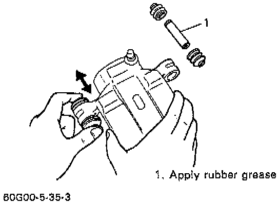 Check guide pin for smooth movement as shown. If it is found faulty, correct or replace. Apply rubber grease to guide pin outer surface. Rubber grease should be the one whose viscosity is less affected by such low temperature as -40°C (-40°F).