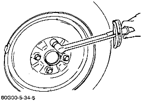CAUTION: During removal, be careful not to damage brake flexible hose and not to depress brake pedal.