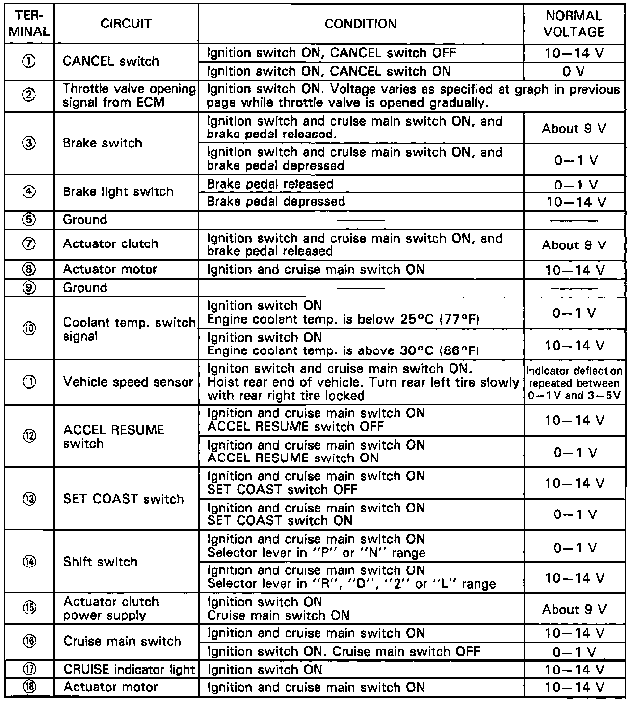 Fig. 6 Cruise Control Unit Voltage Test.:
