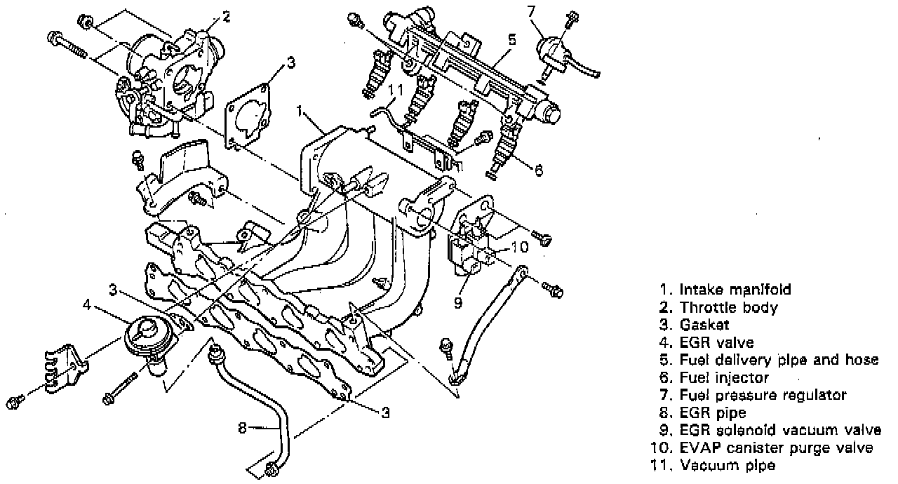 9. Remove intake manifold with throttle body from cylinder head, and then its gasket.
