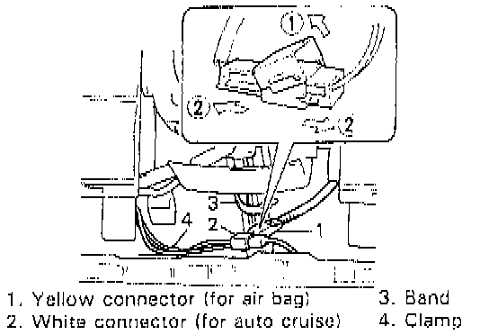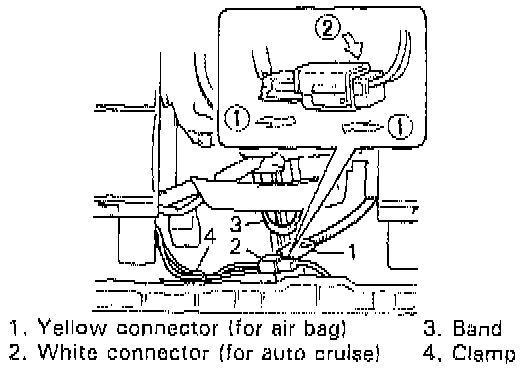 9. Disconnect yellow connector (for air bag) and white connector (for auto cruise, optional).