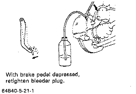 6) When bubbles stop, depress and hold brake pedal and tighten bleeder plug.