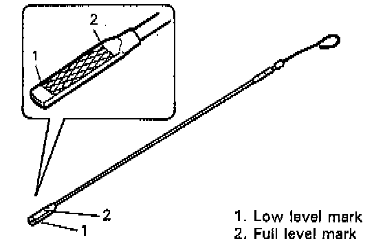 7. Replenish oil until oil level is brought to FULL level mark on dipstick. (about 3.3 liters or 6.9 pints). Filler inlet is at the top of cylinder head cover.