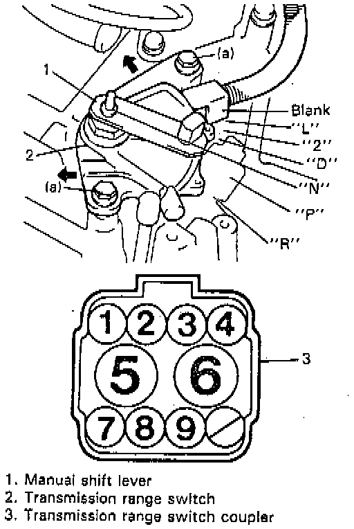 5. Check that engine starts in "N" and "P" ranges but it line "2", "L" or "R" range. Also, check that back-up lights turn ON in "R" range.