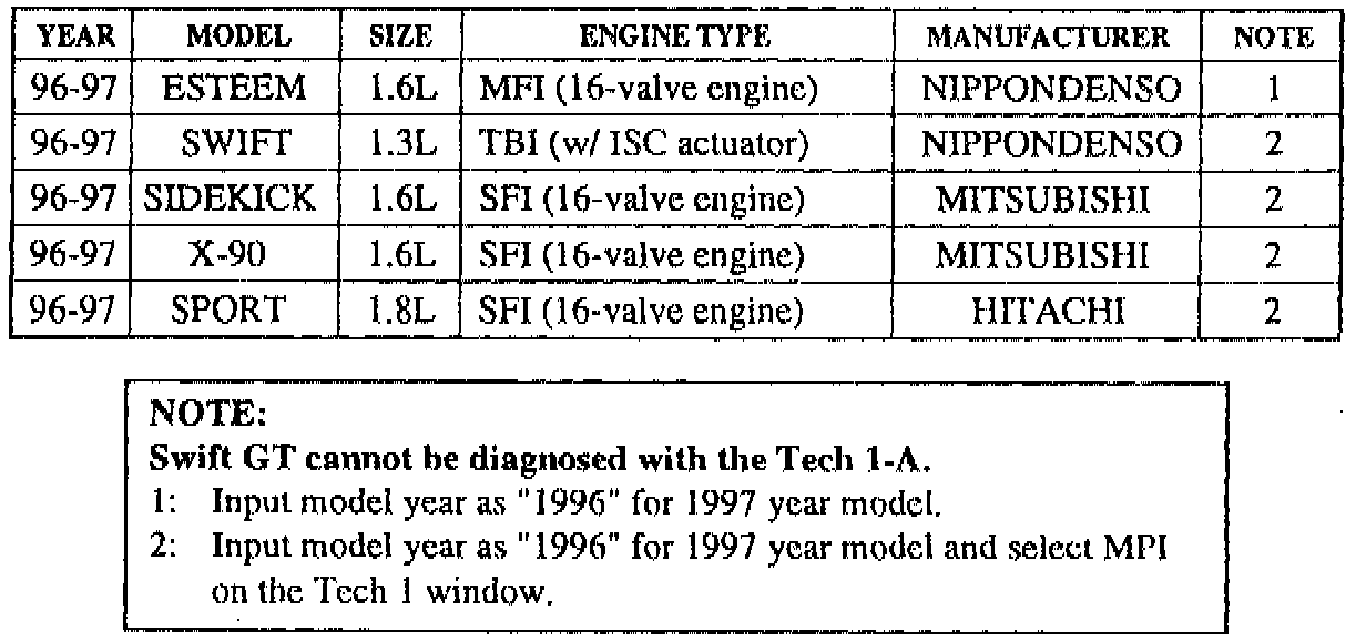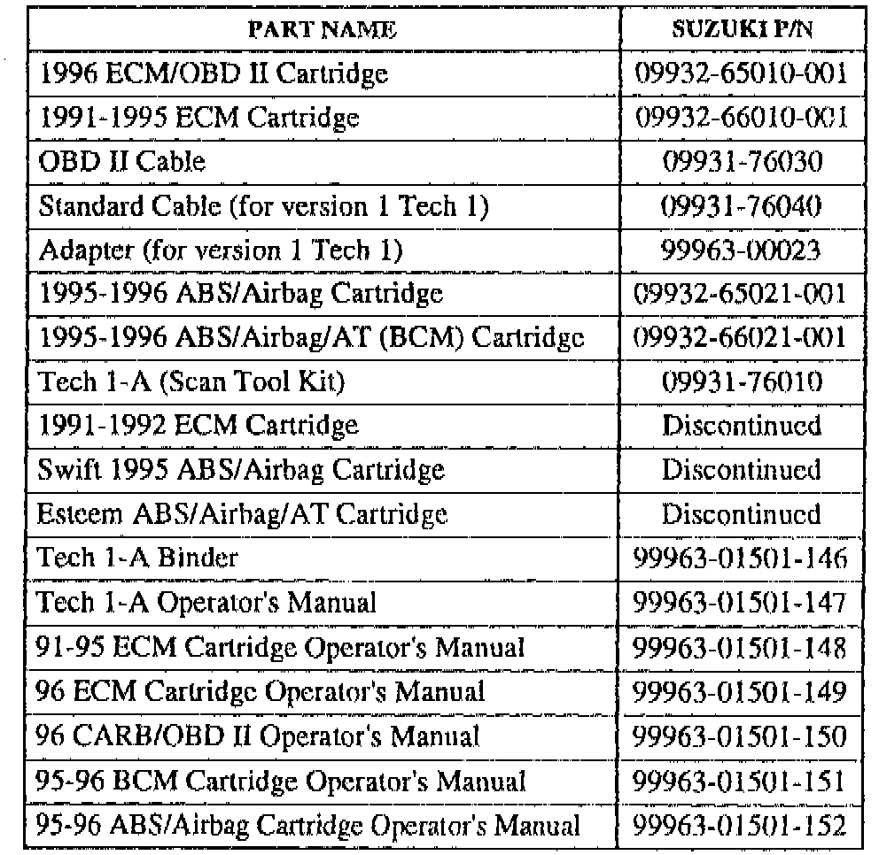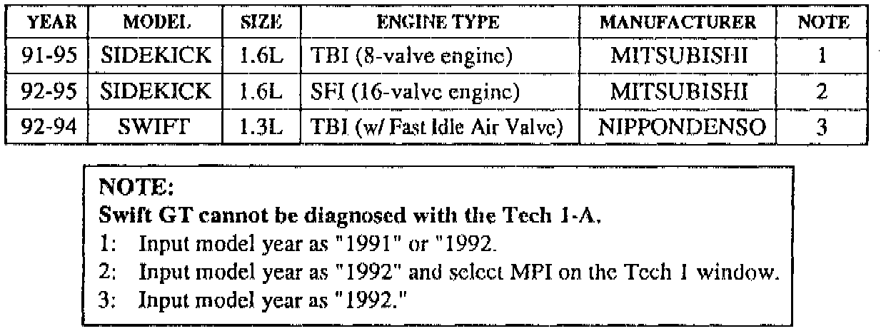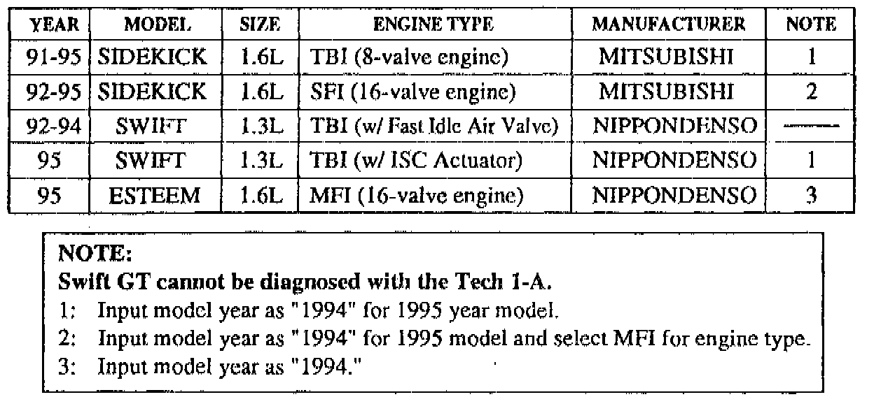 ^ THE 1991 - 1995 SUZUKI CARTRIDGE (09932-66010-001) WILL NOT SUPPORT THE 1991- 1994 SWIFT GT (DOHC).