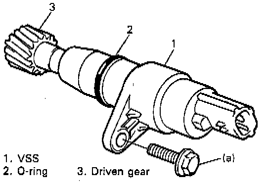 1. Check O-ring and VSS surface for their flawlessness, apply oil to O-ring and driven gear and then install VSS to transmission.