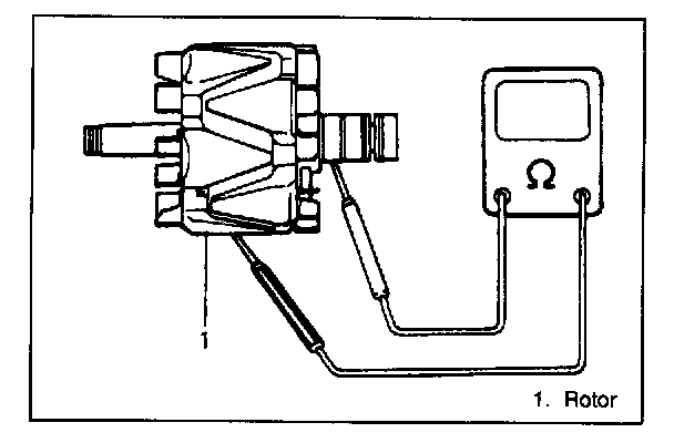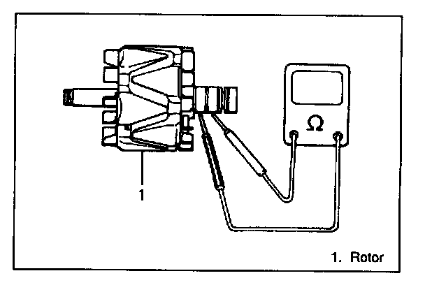 Using ohmmeter, check for continuity between slip rings of rotor. If there is no continuity, replace rotor.