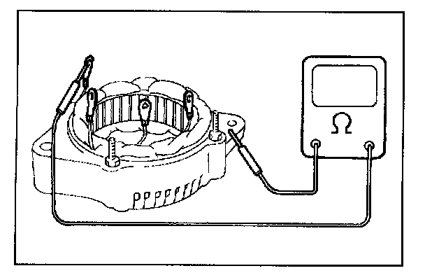 Using ohmmeter, check that there is no continuity between coil leads and stator core. If there is continuity, replace stator.