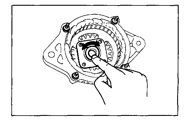 Using ohmmeter, check that there is no continuity between slip ring and rotor. If there is continuity, replace rotor.