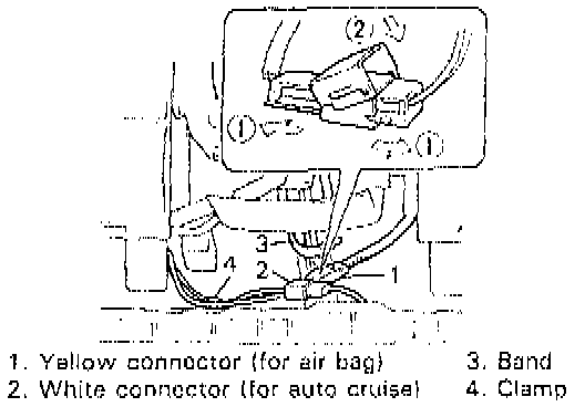 7. Disconnect yellow connector (for air bag) and white connector (for auto cruise, optional).
