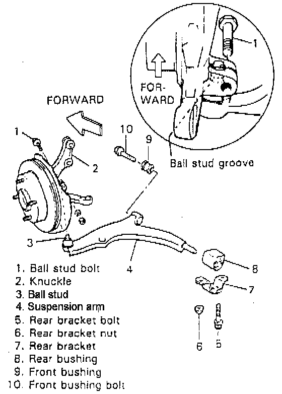Align ball stud groove with knuckle bolt hole as shown in figure. Then install ball stud bolt from the direction as shown.