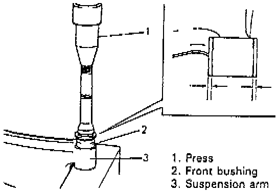 8. Cut off flange of front bushing and then push out front bushing by using hydraulic press.