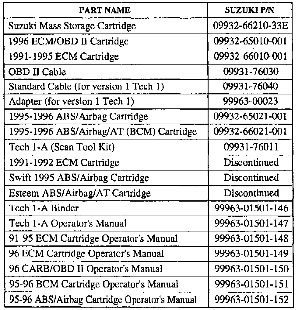 - A complete listing of all Tech-1 mass storage cartridge and manuals for older model years. These manuals can be ordered from our parts department using the part numbers listed in this bulletin.