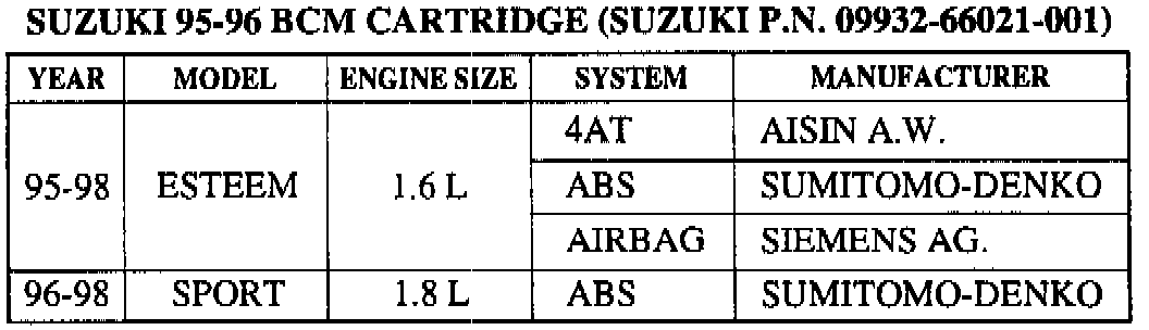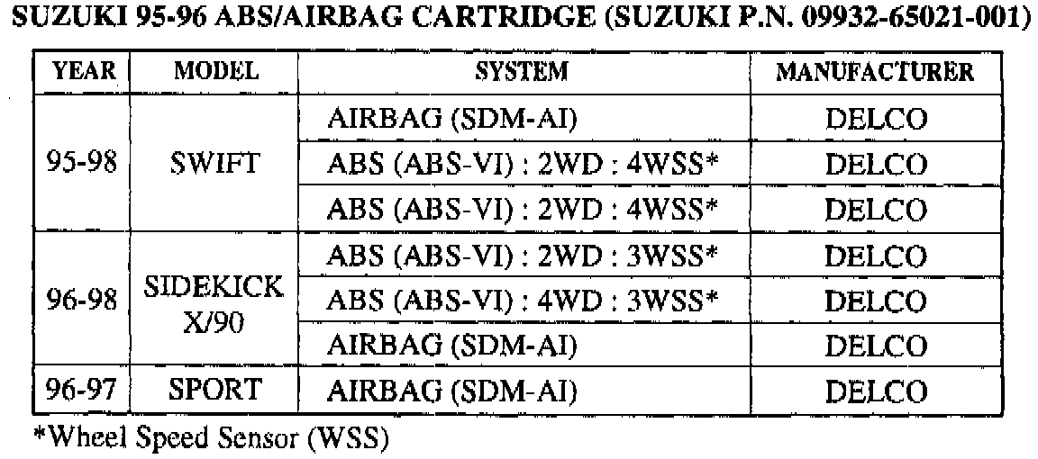 SUZUKI 95-96 ABS/AIRBAG CARTRIDGE