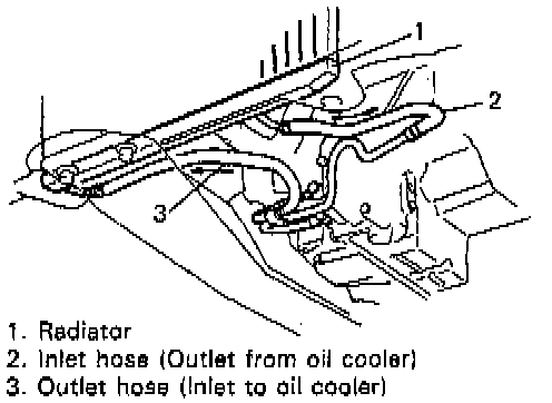 The rubber hoses for the oil cooler should be replaced every 75,000 km (45,000 miles) or every 3 years. When replacing them, be sure to note the following.