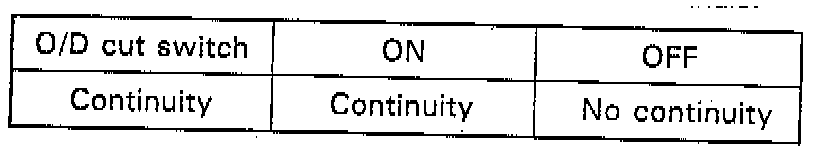 Check continuity between O/D cut switch terminals.
