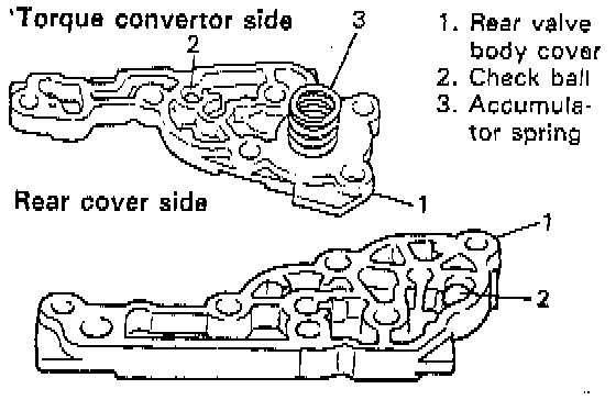 4. Install valves and compression springs to rear cover side of front valve body.