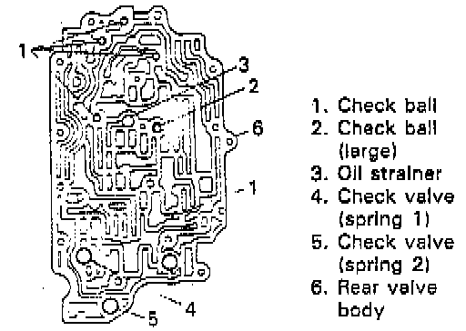 8. Place check balls, oil solenoid strainer, check valves and compression springs to rear valve body.