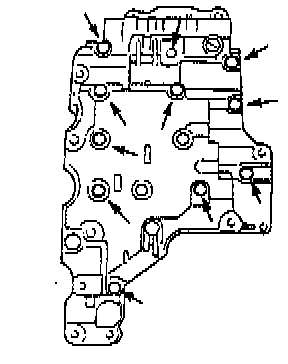 11. Remove front valve body cover, cover gaskets and plate by removing 4 bolts.