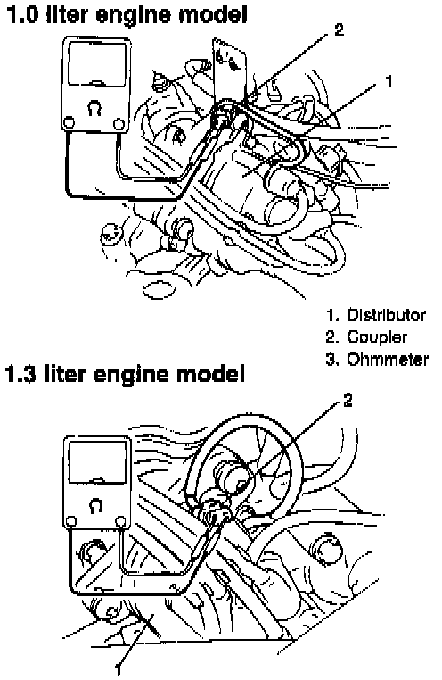 - Disconnect distributor lead coupler.- Measure resistance of pickup coil by using ohmmeter.