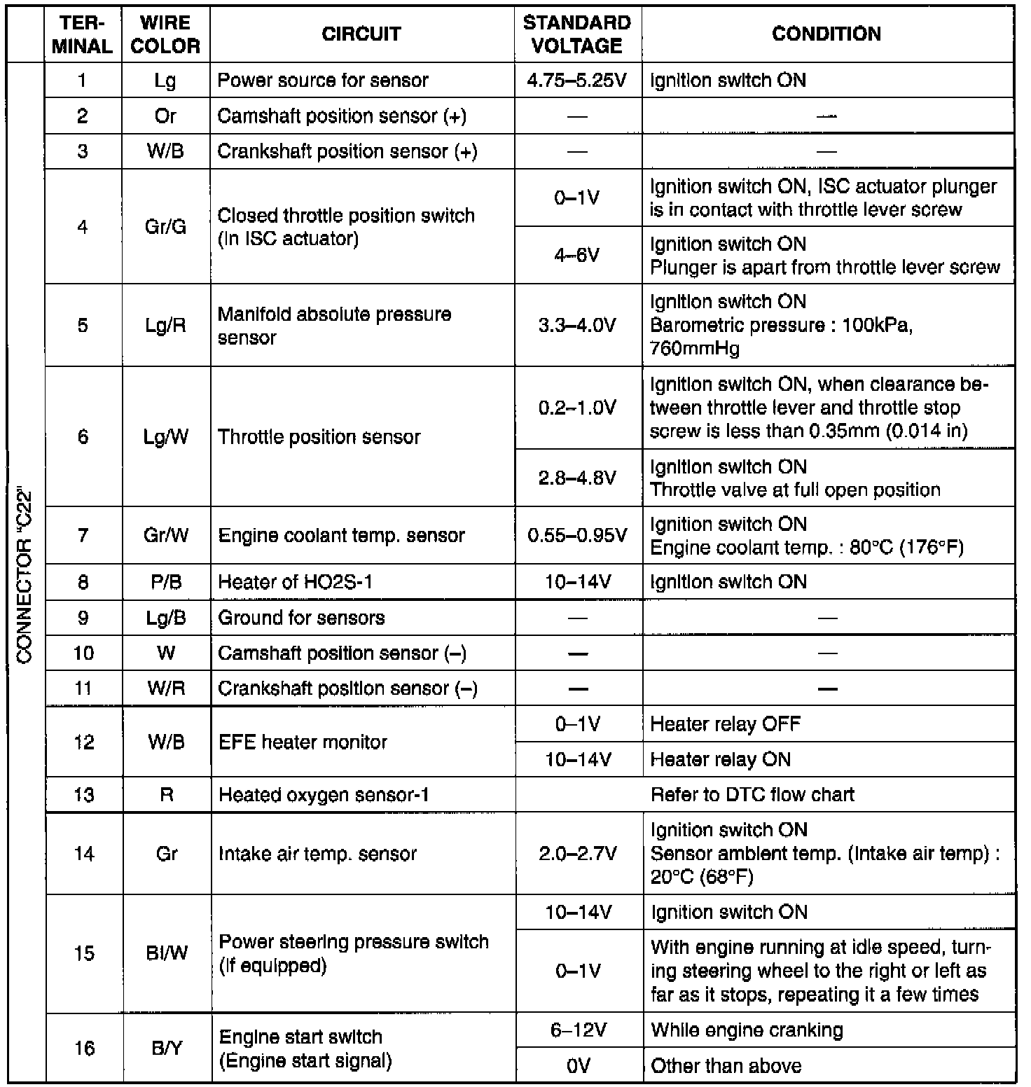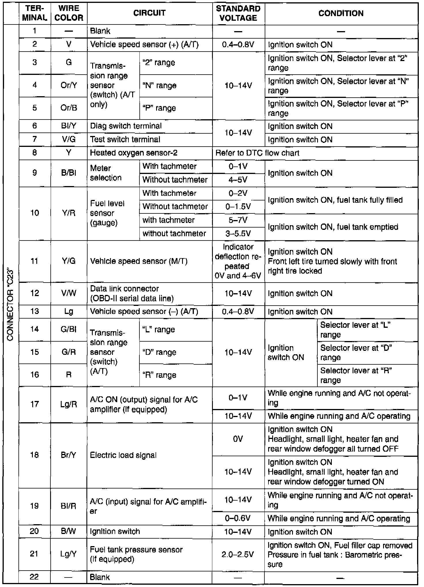 NOTE: As each terminal voltage is affected by the battery voltage, confirm that it is liv or more when ignition switch is ON.