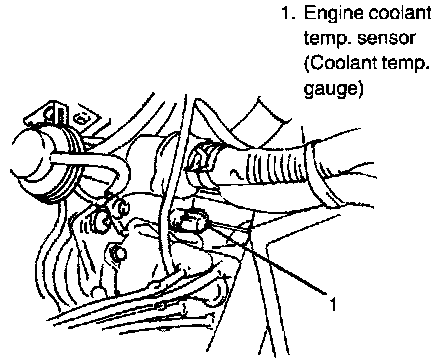 Located at the side of thermostat case, this sensor measures the temperature of the engine coolant and converts its change into that in resistance through the thermistor like the air temperature sensor. That is, as coolant temperature lowers, resistance increases and as it rises, resistance decreases. By monitoring the resistance of the coolant temperature sensor, ECM detects the engine coolant temperature and that affects most systems under the control of ECM.